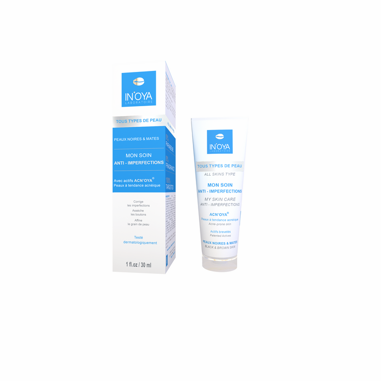 Axé sur la recherche pour les peaux pigmentées et fidèle à son positionnement de marque dermatologique innovante, le Laboratoire IN’OYA lance une nouvelle gamme de soin brevetée : ACN’OYA® Après le succès de la gamme « anti-taches » MEL’OYA®, le Laboratoire IN’OYA s’attaque désormais à la source des taches chez plus de 70% des femmes noires, mates et métissées : les boutons et imperfections. A travers sa nouvelle gamme de soins dermocosmétiques innovants ACN’OYA® , le Laboratoire IN’OYA propose un traitement « anti-imperfections » spécifique aux peaux pigmentées à tendance acnéique Face aux problématiques d’hypersécrétion sébacée, d’obstruction des pores, d’inflammation sous-jacente et de colonisation bactérienne de P-Acnes : le Laboratoire IN’OYA apporte une réponse innovante avec la technologie brevetée ACN’OYA® intégrée dans 2 nouveaux soins : Mon Soin « anti-imperfections » et Mon Correcteur Ciblé « imperfections locales »