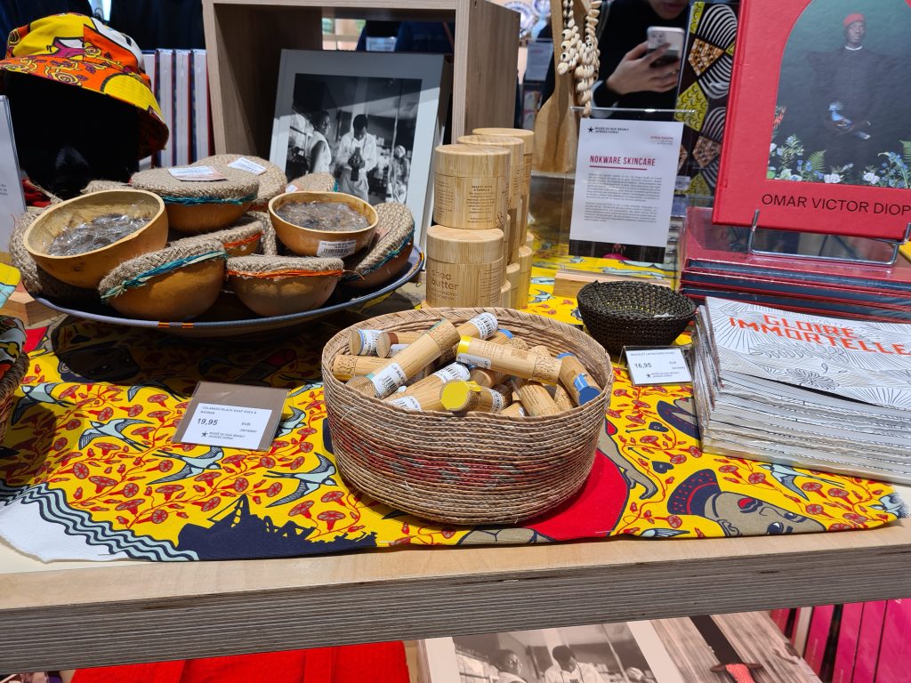 Carrousel de la création africaine, elle est présentée dans la Galerie Jardin du musée du Quai Branly, des l’entrée un pop up store qui met en avant le meilleur du pap des designers du Continent, mais aussi un peu plus loin, en ordre de création et d’ancienneté des pièces contemporaines signées par des créateurs majeurs du continent.