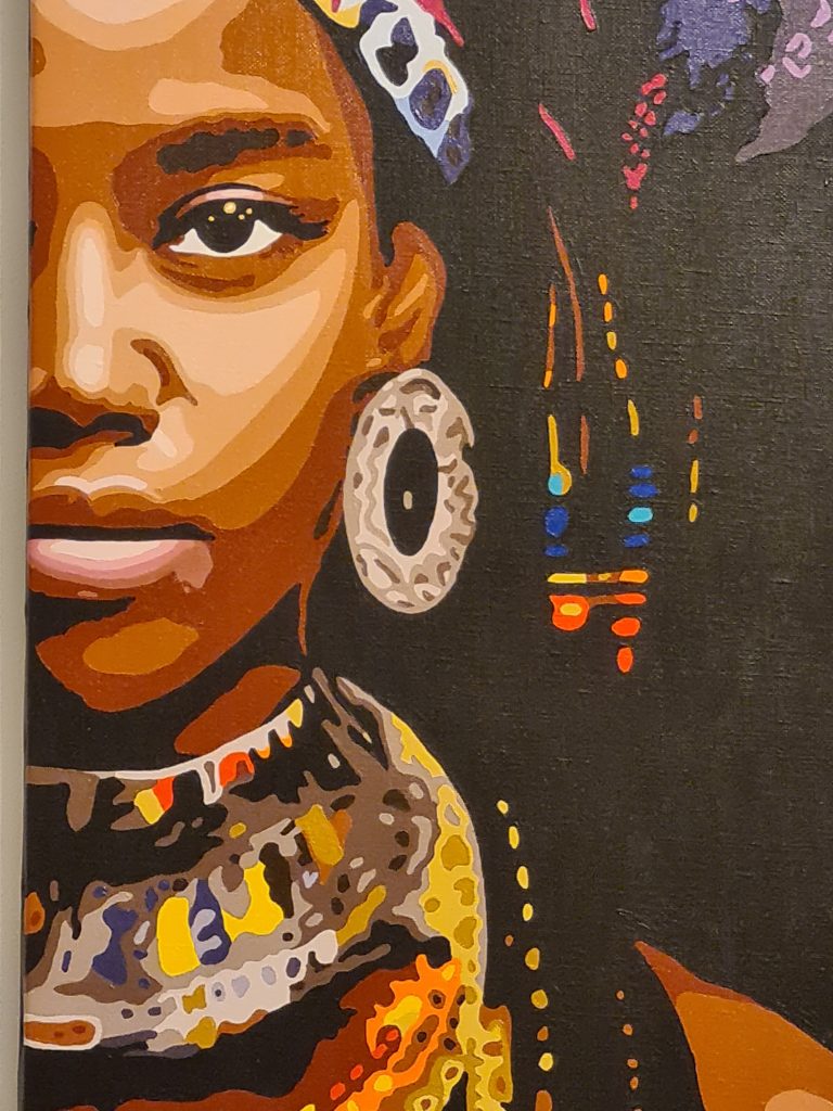 Alors en peignant cette “féminitude” condition féminine ou féminin, elle se réapproprie son corps, elle apprend à dialoguer, lui donner de l’amour.