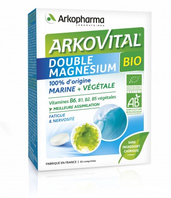 Les laboratoires Arkopharma ont spécialement développé Arkovital® BIO Double Magnésium : une association exclusive de magnésium d’origine végétale et marine BIO pour aider à réduire fatigue et nervosité. Arkovital® BIO Double Magnésium est aussi riche en vitamines 100 % d’origine végétale, pour une meilleure assimilationpar l’organisme.