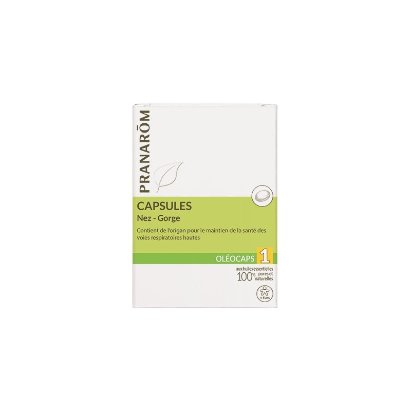 Les Capsules pour le nez et la gorge de PRANAROM aux huiles essentielles 100% biologiques*: Origan vulgaire, Citron