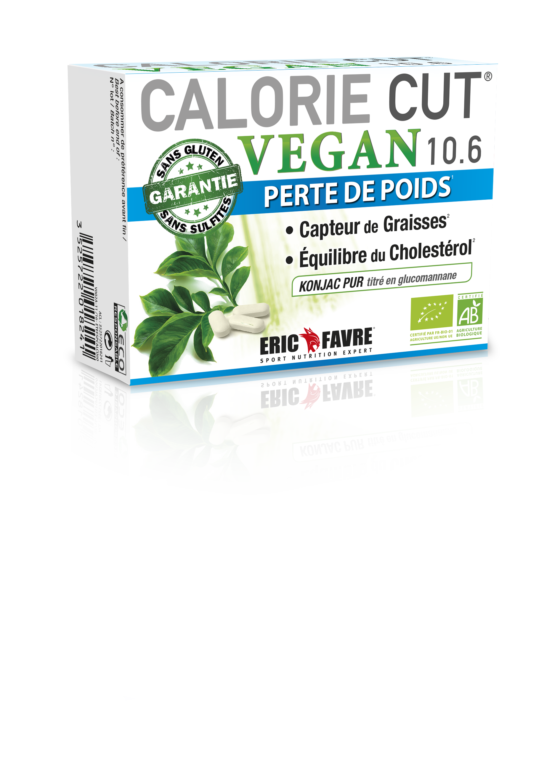 CALORIE CUT® VEGAN est composé d’un actif issu de l’Agriculture Biologique : le konjac. Il assure une perte de poids optimale grâce à ses 5 actions :