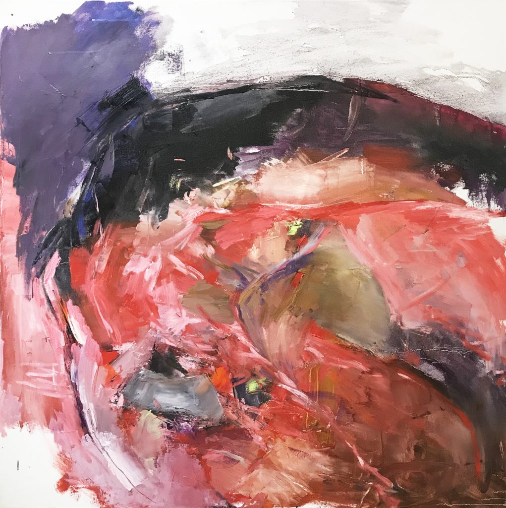 Dans sa peinture, il y a plusieurs couches ou strates, cela part d’une émotion puis en vient une autre et avec cette valse incessante des ressentis, le tableau se métamorphose au fur et à mesure des coups de pinceaux.