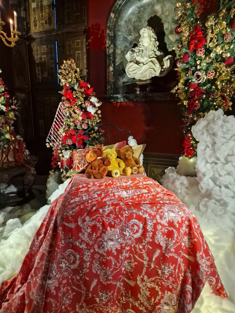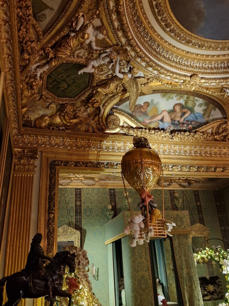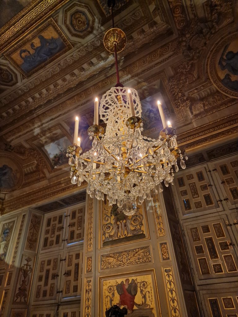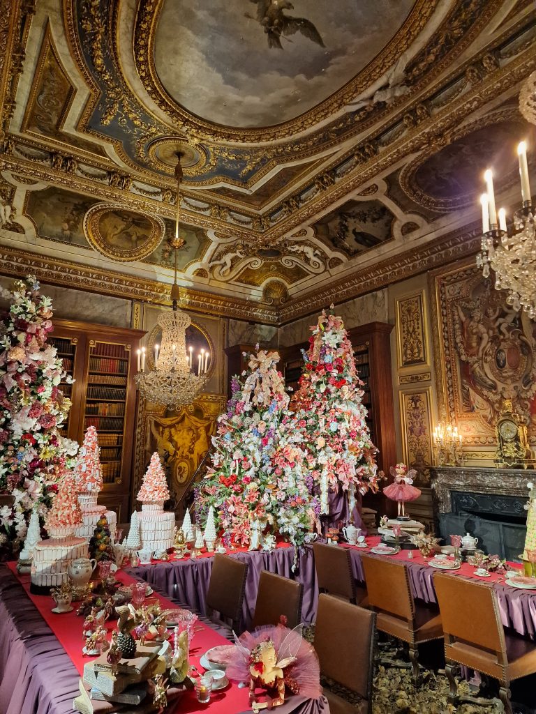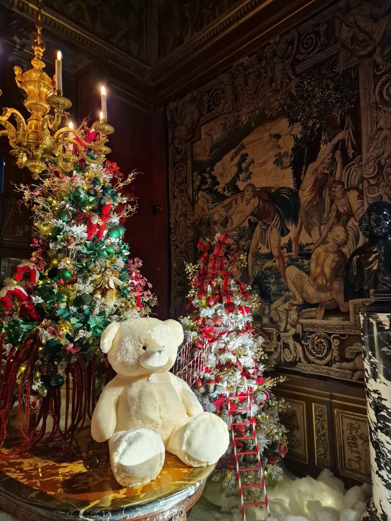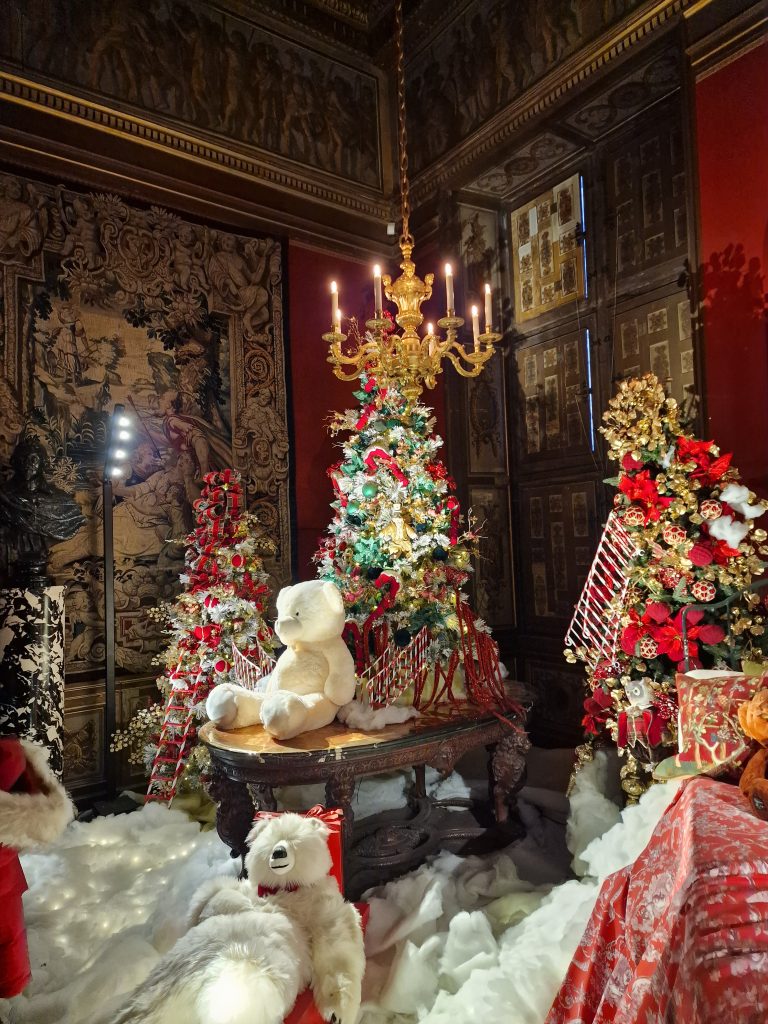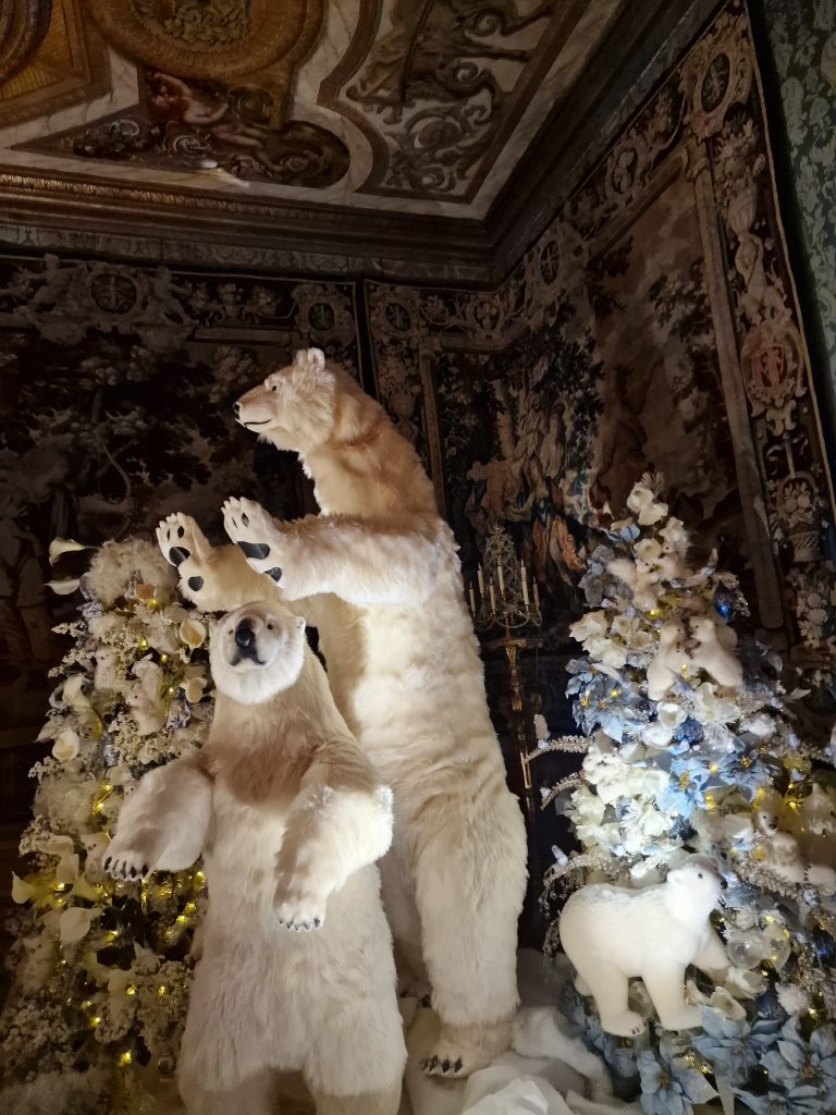 Plaisir des yeux et tous nos sens sont émoustillés. Gros coup de cœur aussi pour les plafonds dorés, les tableaux de maitre, les candélabres et lampadaires en Crystal qui révèlent encore une fois la magnificence de ce château et son histoire. A cote les feux de cheminée travaillent de plein feu et réchauffent les visiteurs.