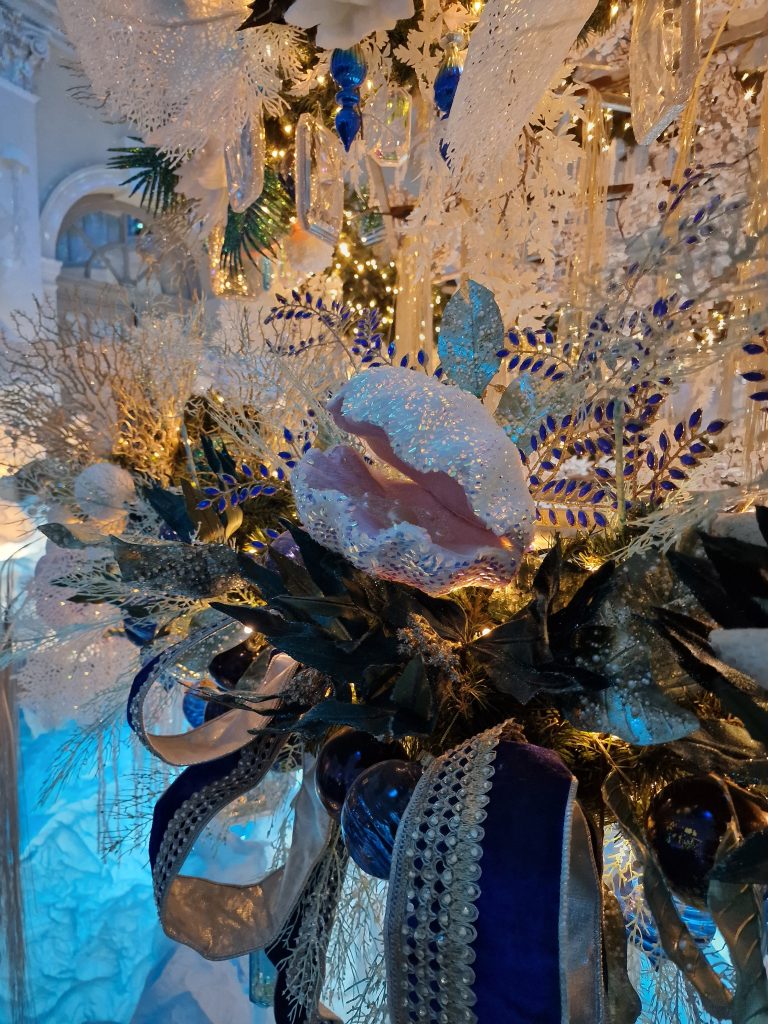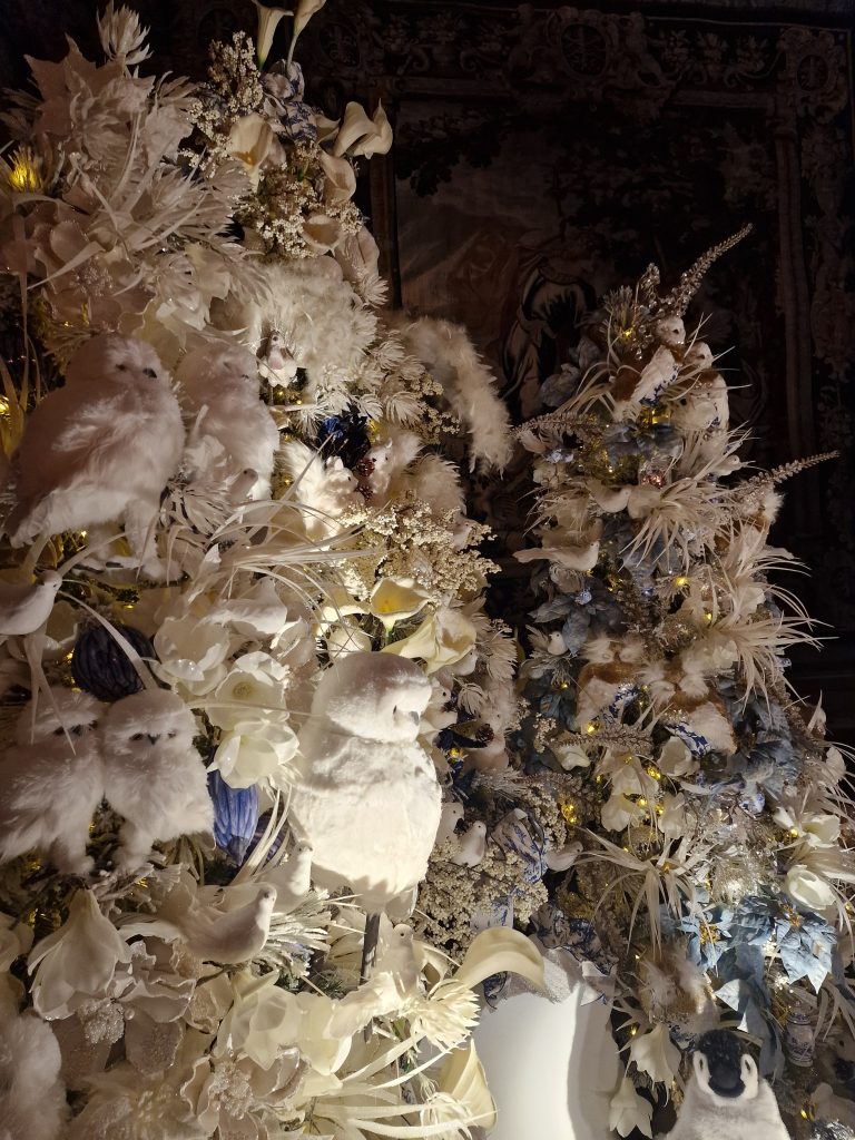 Nous sommes maintenus sur un fil d’imaginaire et d’émerveillement tout au long de la visite, bluffés par la famille pingouin qui bouge avec douceur, les chouettes blanches ornant les sapins. Une profusion de détails certes mais faits avec un agencement des plus poétique. Ici les oiseaux les plumes les branches et les fleurs fusionnent avec amour.