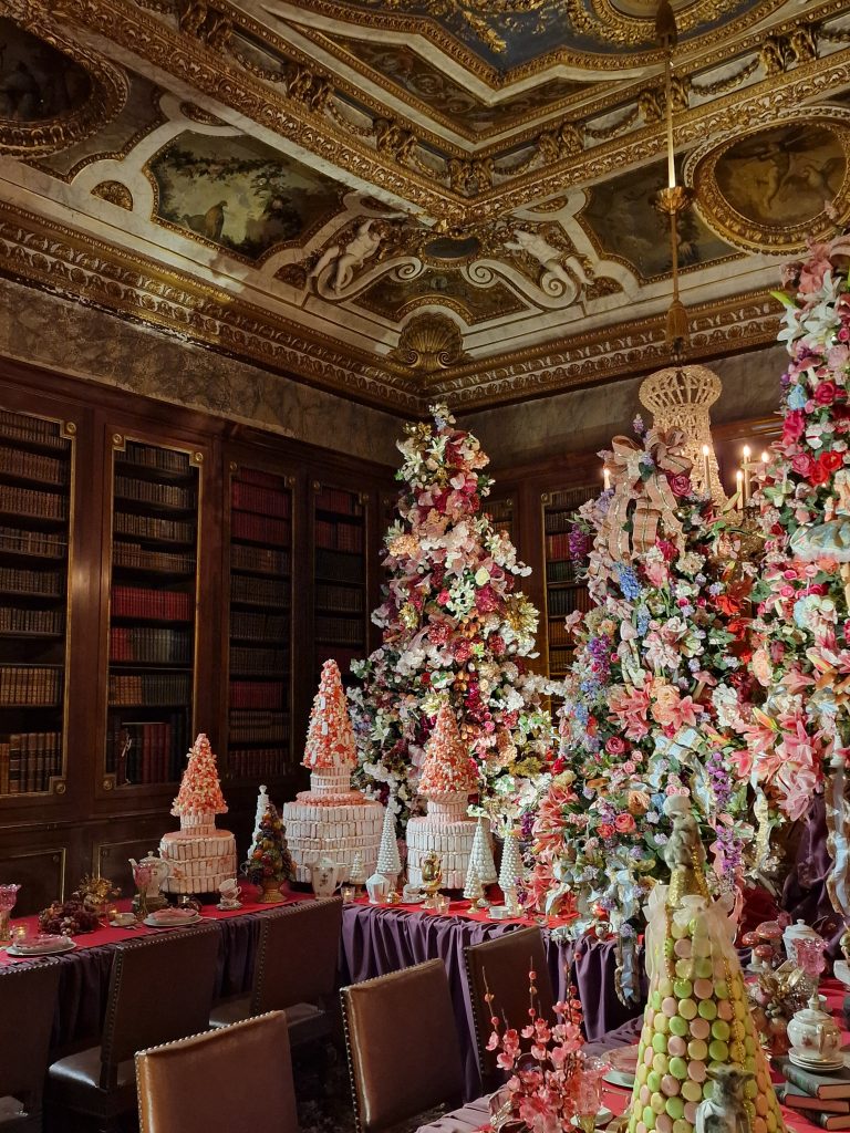 Dans la prochaine pièce, c’est le festin des fées, on passe aux choses sérieuses et les buffets se font pantagruéliques, et l’on retrouve les iconiques macarons et pâtisseries à la française, on y croirait au point de vouloir croquer les gourmandises.