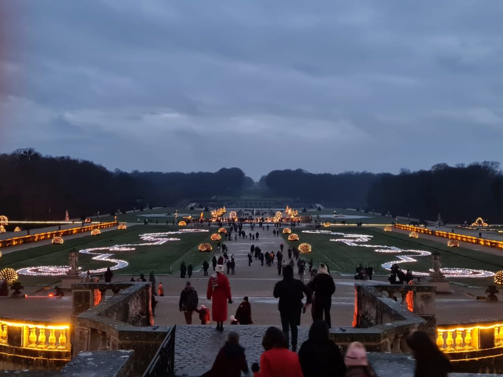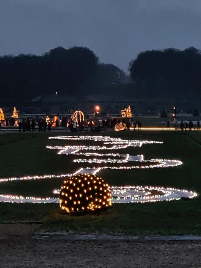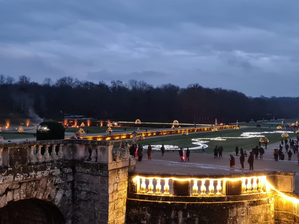 À l’extérieur, le voyage continue. Le jardin à la française devient un parcours lumineux : allées scintillantes, bosquets habillés de guirlandes, points de vue sublimés. Le domaine propose plusieurs animations qui donnent envie de rester tout au bout de la nuit.