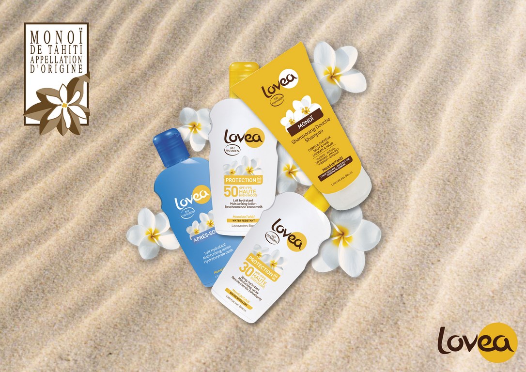 Lovea propose une collection de soins solaires allant du SPF6 au SPF50. Les textures, toutes plus onctueuses et crémeuses les unes que les autres, s’appliquent en un clin d’œil ! Bien protégée, la peau est également bien hydratée et délicieusement parfumée au Monoï de Tahiti (AOC). Laissez-vous hâler de plaisir avec Lovea, vous êtes bien protégé !