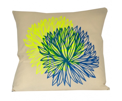 Housse de coussin « Da Funk », impression sérigraphiée, 50 x 30 cm – Corail & mint – Exite en bleu et jaune fluo MALLOW BLOSSOM, sur mallowblossom.com. 48.00€