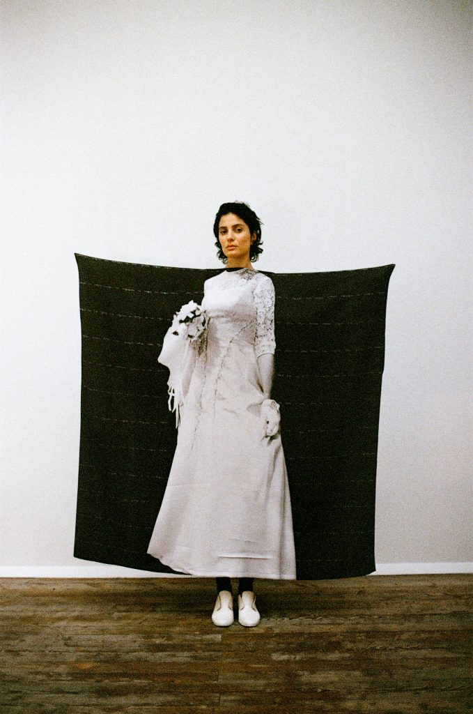 Calderara fashion for this collection is an illustration of Binga’s work in a didactic manner, its traverses it by adopting his methods: subtraction of meaning, rebellion against dogma, and the centrality of the body as a narrative tool.