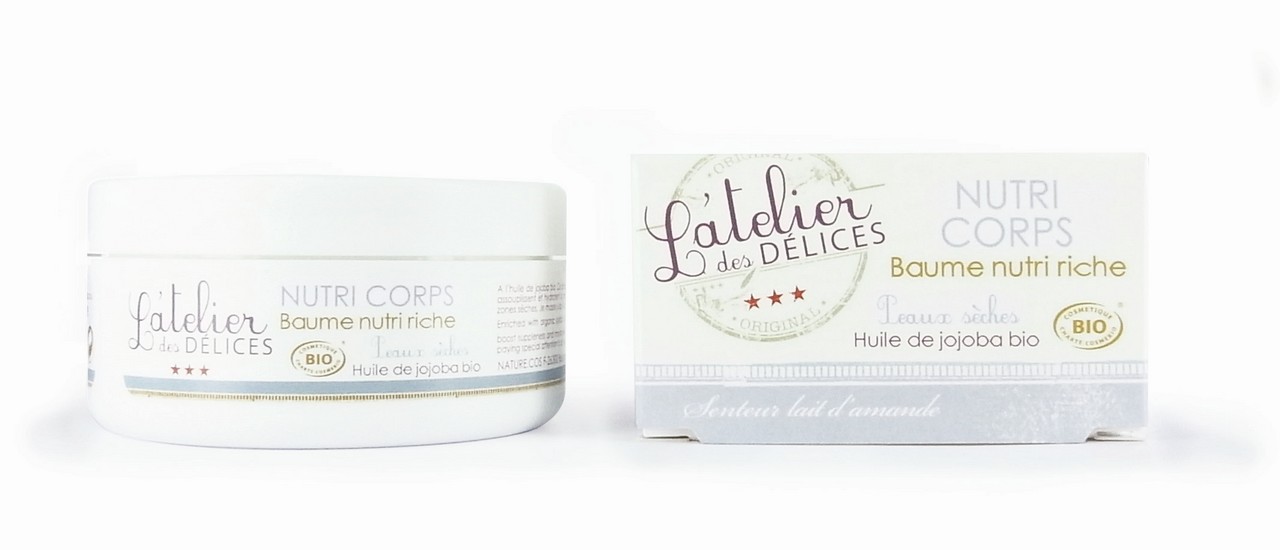L’Atelier des Délices, spécialiste de soins visage et corps naturels et bio, présente sa nouvelle recette : Nutri Corps. Idéale cet hiver pour prendre soin au mieux de votre peau, Nutri Corps se compose d’un Baume Nutri Riche et d’une Huile Nourrissante très riches en actifs hydratants*, adoucissants et assouplissants à la senteur subtile lait d’amande.