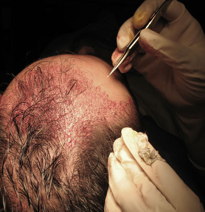 et de le réimplanter dans la même séance, dans les zones où l’on veut corriger la calvitie.