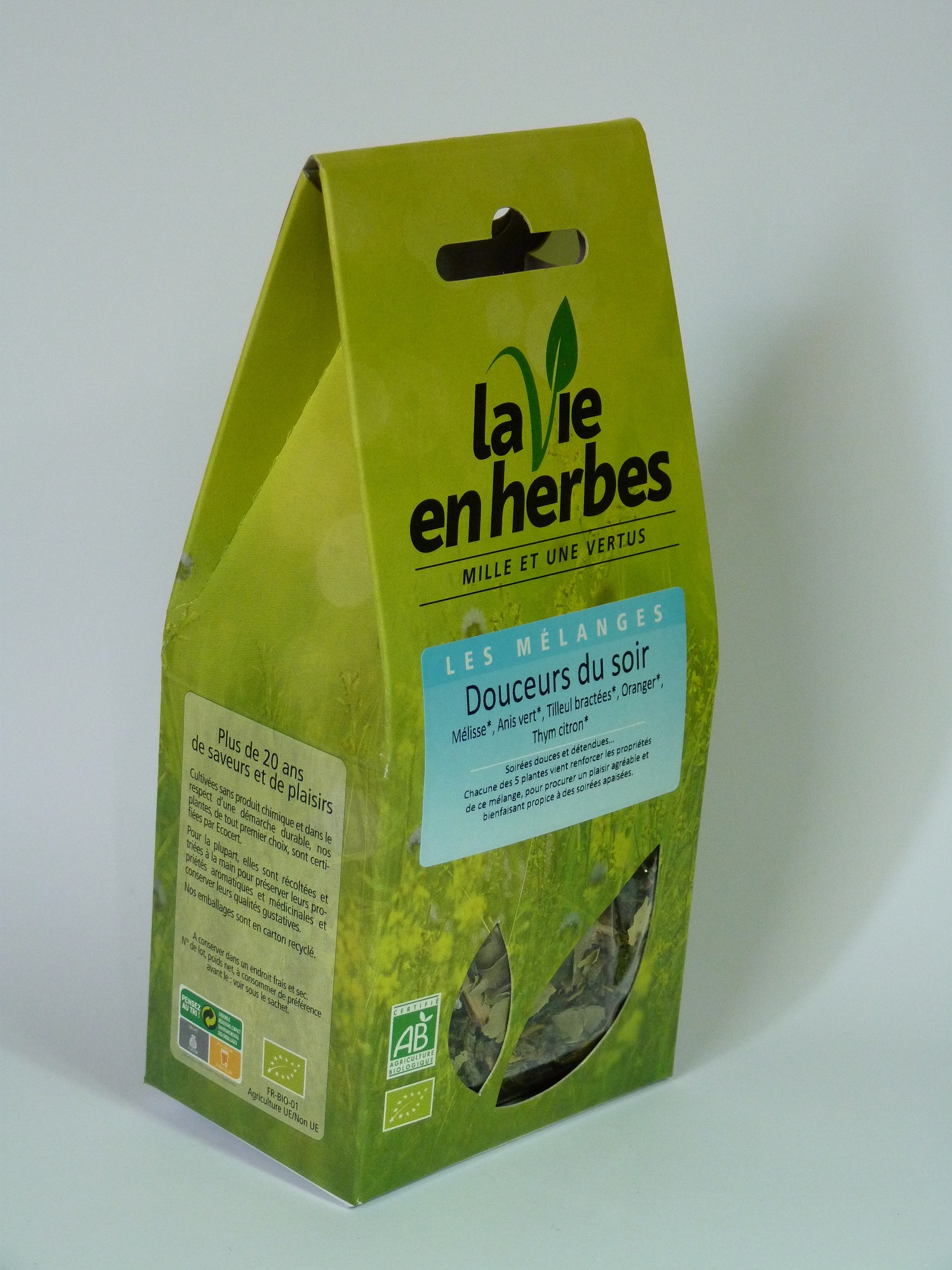La tisane « Douceurs du soir » existe depuis la création de l’ESAT (Etablissement et Service d’aide par le Travail)  La Vie en Herbes (1991).