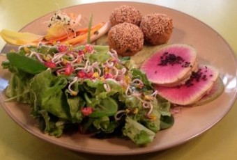 Aujourd’hui chez Lawrence aboucaya on peut… Commencer avec un velouté haricots blancs et pesto d’épinards, ou un bouillon de légumes ail, gingembre, citronnelle, avec petits dés de...