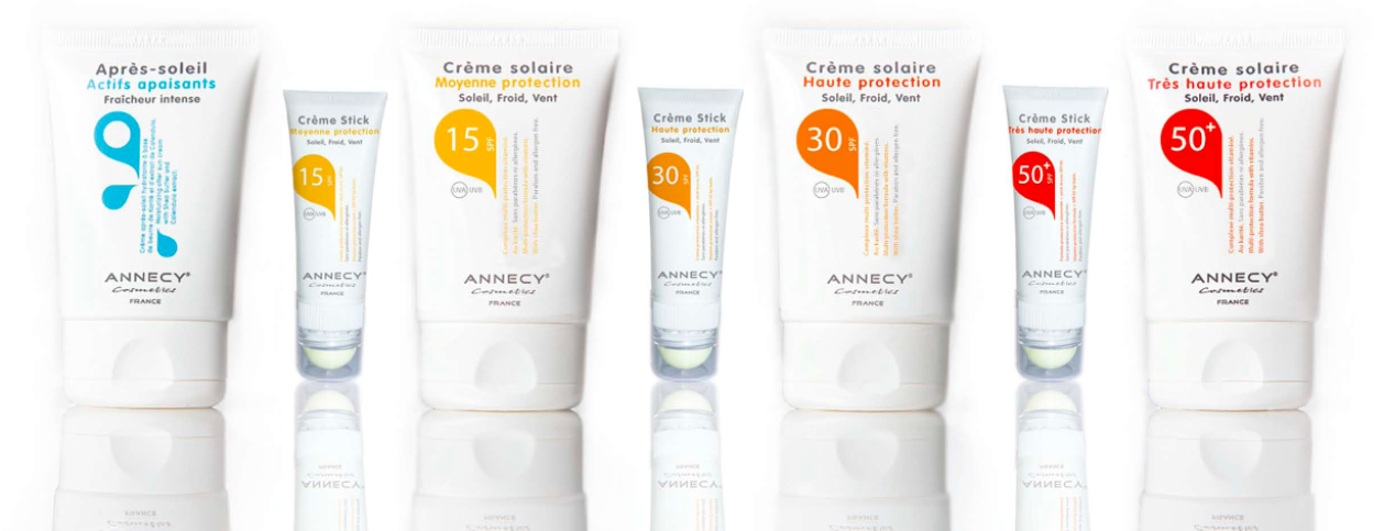 Annecy Cosmetics a conçu une gamme de soins solaires aux formulations de pointes, qui stimulent le NMF (Natural Moisturizing Factor), pour les peaux sensibles, qui favorisent l’obtention d’un hâle durable, avec une protection large contre les UVA et UVB.