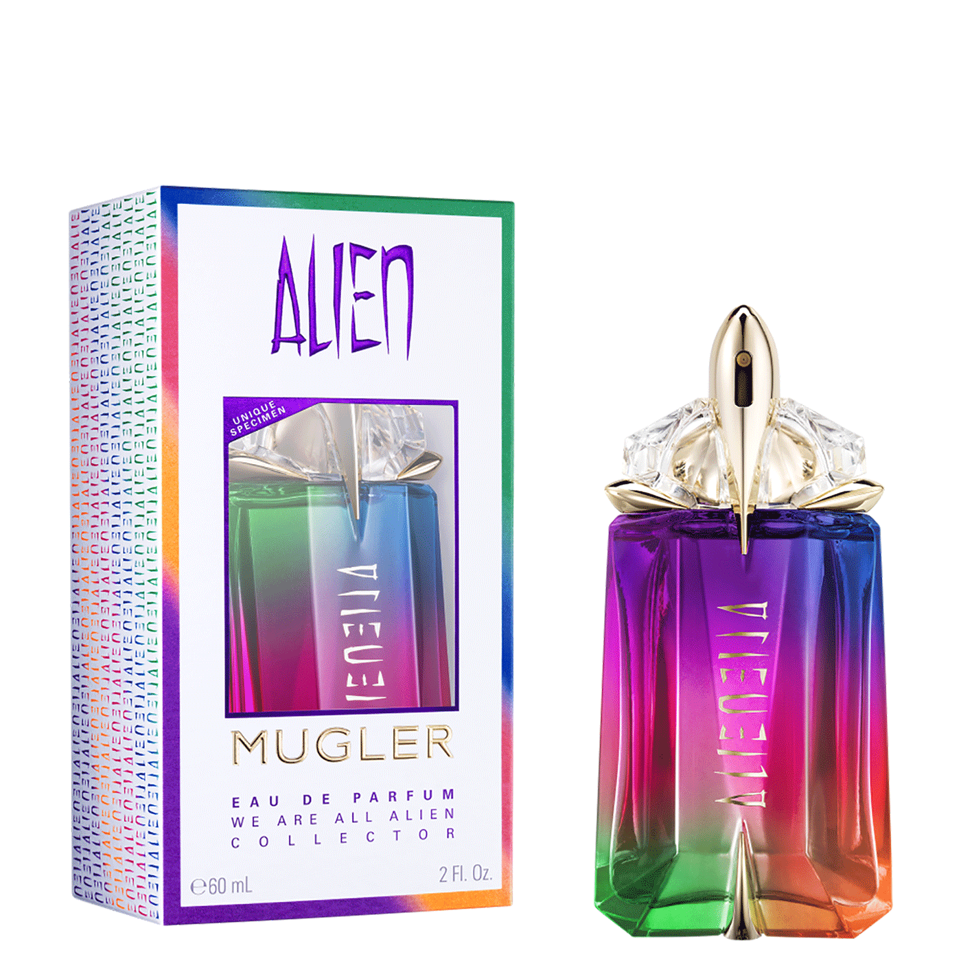 Doté d’un attrait magnétique, ce flacon est aujourd’hui encore magnifié grâce à un nouveau procédé de peinture sur verre. Thierry Mugler fait ici une nouvelle fois preuve d’une forte créativité et nous livre une technique de flaconnage jusqu’alors inédite en parfumerie. We Are All Alien est une ode à la diversité.