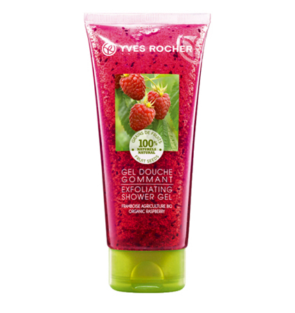 Pour ce gel douche gommant, Yves Rocher a associé la Framboise tendre, aux pépins de Kiwi et à la poudre de noyau d’Abricot aux propriétés exfoliantes.