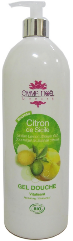 Gels douche citron de Sicile, rose de Damas ou grenade Emma Noël,12 € le flacon d’1 l