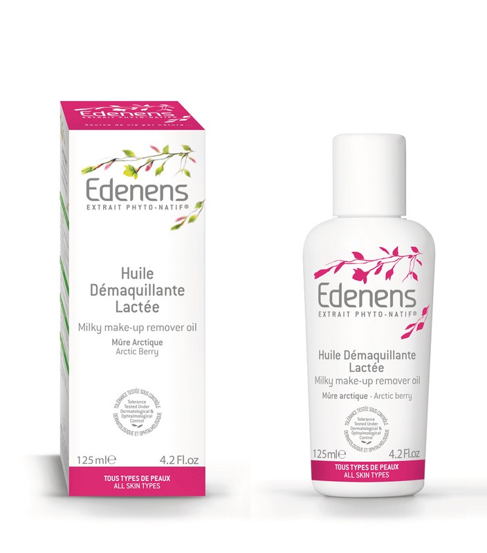 La Mûre Arctique et le Melon d’Eau favorisent le renouvellement cellulaire et protègent des agressions extérieures pour un teint plus lumineux. L’Extrait Phyto-Natif apporte aux cellules les éléments nutritifs essentiels : peptides, acides aminés, minéraux. Non comédogène et sans parfum, l’Huile Démaquillante Lactée Edenens convient à tous types de peaux même mixtes et grasses car elle donne un fini soyeux non gras. Tolérance testée sous contrôle dermatologique et ophtalmologique.