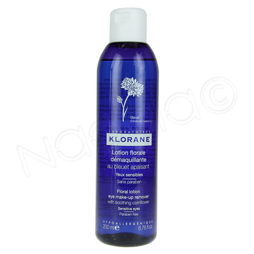 Klorane Lotion Florale Démaquillante est composée d’eau florale de Bleuet aux vertus apaisantes et décongestionnantes pour le soin des yeux sensibles et des porteurs de lentilles.