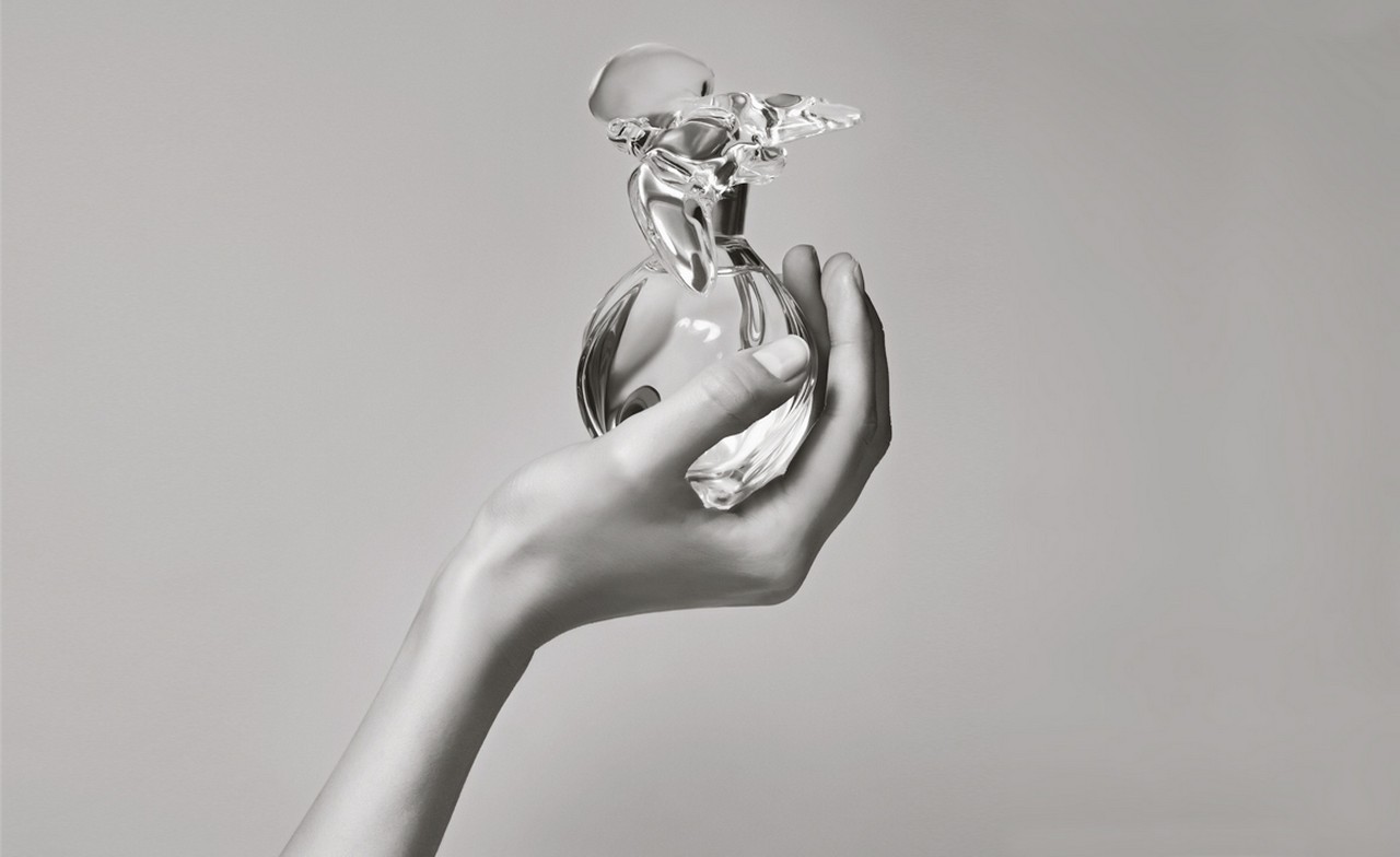 Its rising curls conjure up springtime rays of the sun and happy plenitude. Its feminine and harmonious curves, crowned with two doves with beating wings, suggest a joyful whirl. The bottle of L’Air du Temps is a unique, precious and familiar object. A narrative sculpture, the expression of purity and freedom governed its design.