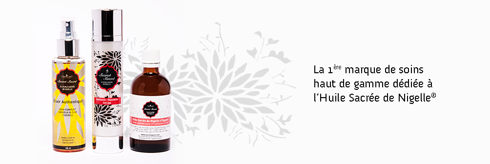 Secret Sacré valorise et préserve la tradition sacrée de la nigelle dans un « savoir faire artisanal » haut de gamme unique. Les soins Secret Sacré sont issus de traditions millénaires. L’huile de nigelle, huile noble « don de la nature » respectée et considérée comme un « don de Dieu » dans tout l’Orient méritait qu’on lui offre une marque garante de sa pureté et de sa qualité. L’huile sacrée de nigelle vierge Secret Sacré est bien sûr bio et de 1ère pression à froid. Sa filtration douce préserve toutes les vertus médicinales de l’huile. Pour en savoir plus rendez-vous à la page « l’huile sacrée de nigelle »