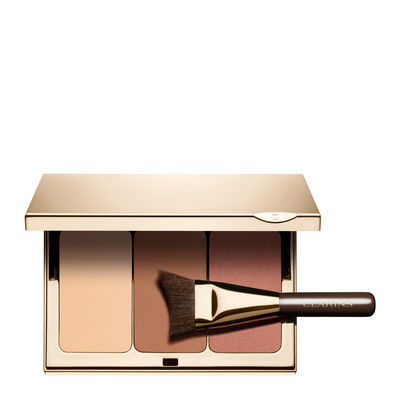 Cette palette et son pinceau biseauté permettent de redessiner facilement les contours du visage. 3 poudres compactes longue tenue, enrichies en huile d’amande douce bio et avec le complexe anti-pollution Clarins pour le confort et la protection de la peau : une poudre illuminatrice pour éclairer les zones d’ombre, une poudre de contour pour corriger et affiner les reliefs, un blush frais pour rehausser les pommettes.