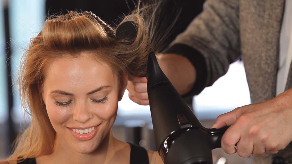 5. Refroidir pour fixer Une fois toutes les sections refroidies et épinglées, diminuez la puissance du ghd airTM et diffusez l’air froid sur l’ensemble de la chevelure pour fixer.