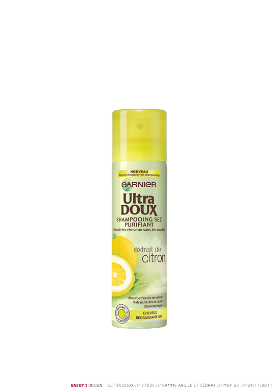 Garnier Ultra DOUX crée le shampooing sec à l’extrait de citron pour nettoyer les cheveux sans les mouiller. Une recette ingénieuse et pratique qui permet d’espacer les shampooings.