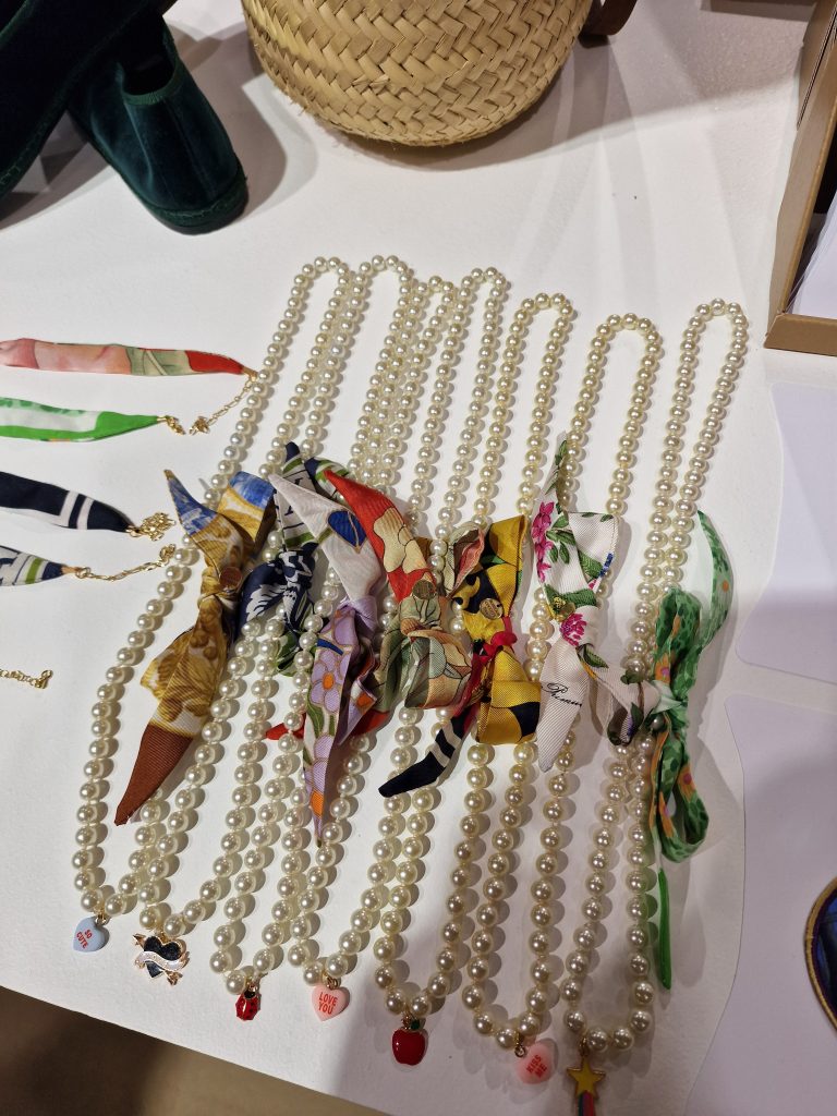 L’Upcycling du luxe avec Bonjour Cocotte, nous avons conversé avec la fondatrice qui explique comment elle recustomise des vieux foulards en soie griffé en parant colliers sautoirs et écussons.