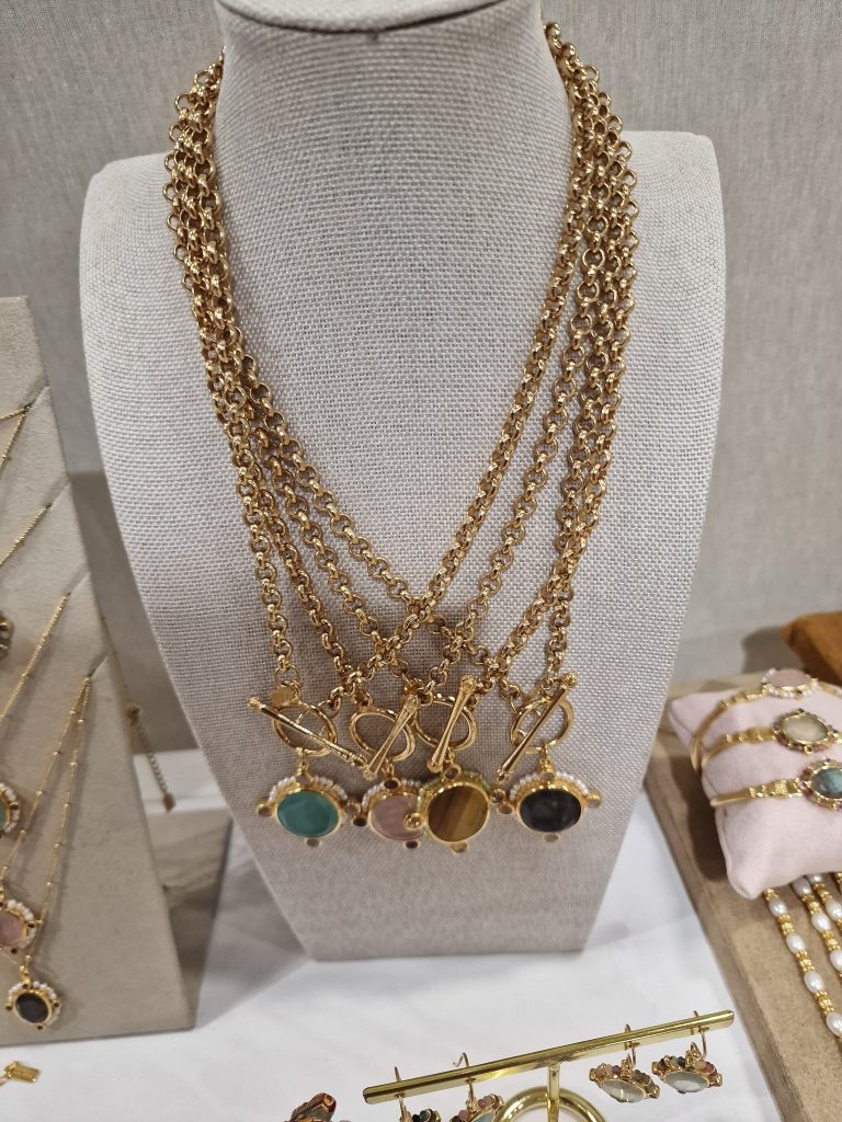 Les bijoux de la francoparaguayeenne qui nous propose des objets de toute beauté, trempés à l’or et sertis de pierres naturelles. Leticia Ponti, créatrice de bijoux haut de gamme plaqués or trois microns, vous invite au voyage à travers une sélection méticuleuse de pierres naturelles pour orner les déclinaisons de colliers, bagues, bracelets et autres bijoux bohème. Une doyenne qui vient au salon depuis de très longues années.