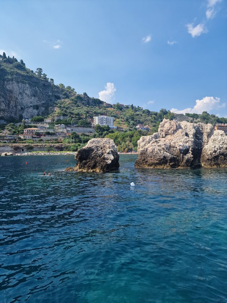 A proximité du très caractériel volcan Etna, elle est célèbre pour son Festival du film américain mais avant tout pour son Festival musical de Taormine. Un lieu magique puisqu’il s’agit d’ un ancien théâtre gréco-romain toujours utilisé de nos jours. À côté du théâtre gréco-romain, des falaises plongent dans les eaux magiques et cristallines d’isola Bella, ou des criques dotées de plages de sable viennent agrémenter ce lieu incroyable. Une étroite bande de sable relie la ville à Isola Bella, qui est aussi une réserve naturelle. Et c’est bien là que se trouve la fameuse grotte bleue et c’est aussi la que nous avons fait notre première expérience de snorkeling de toute une vie !!!