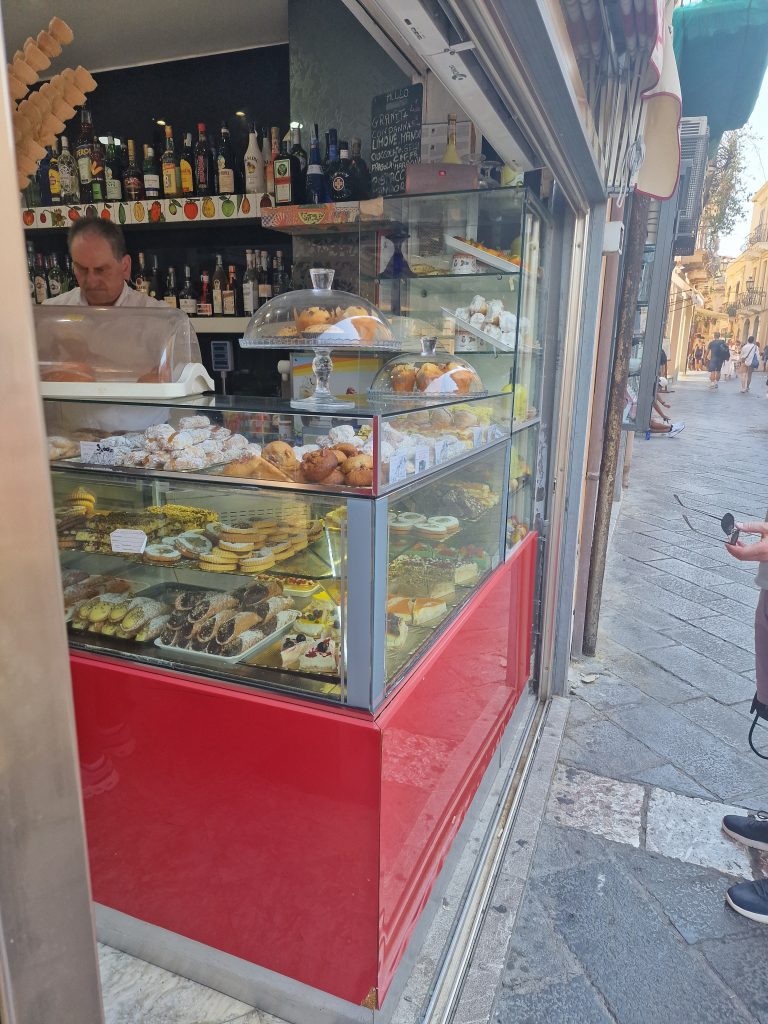 Sur le Corso Umberto les cafés, boutiques et terrasses panoramiques m’ont donné le vertige, mais le Canolo géant m’a aussi fait perdre la tète, je suis folle des desserts siciliens, et je me suis lache come maaaiiiii. Tout est à base de ricotta, crème anglaise et de pistaches et ou citron, ce sont les produits de la région.Parmi les pâtisseries historiques : Pasticceria il Minotauro pour les pâtisseries aux amandes et les douceurs à la crème ; Pasticceria d’Amore pour les douceurs à la pistache et les glaces ; Bar Etna pour les douceurs typiques ou le petit-déjeuner et Da Roberto pour les cannoli.