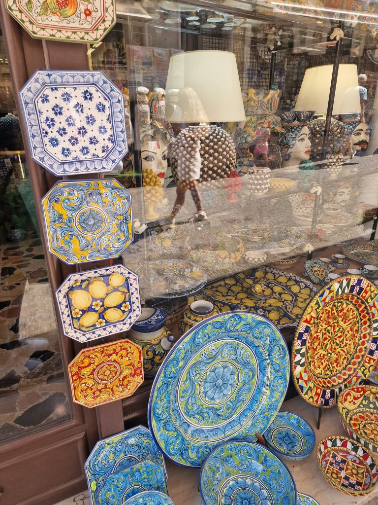 Les balcons fleuries, les petits magasins, les échoppes tout est enchanteur. Pour ma part j’ai craqué pour Antica Sartoria qui est une marque de tenues de plage qui vient par contre de Capri lool le gag ( c’est toujours le Sud), mais j’ai aussi acheté les parfums à la bergamote et au jasmin ( Aria di Sicilia parfums). Shopping oblige et pour ramener un peu de la Sicile avec moi et j’ai oublié aussi les bonbons al limoncello !