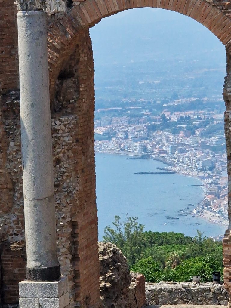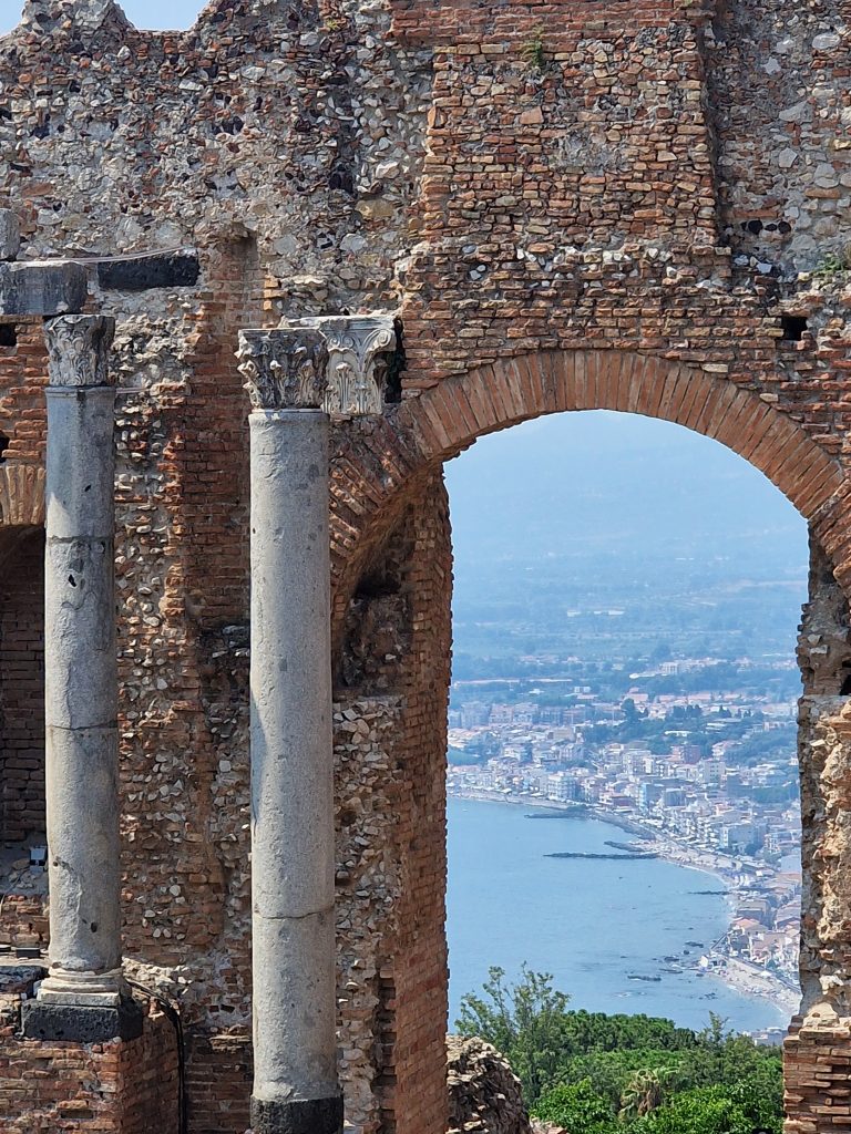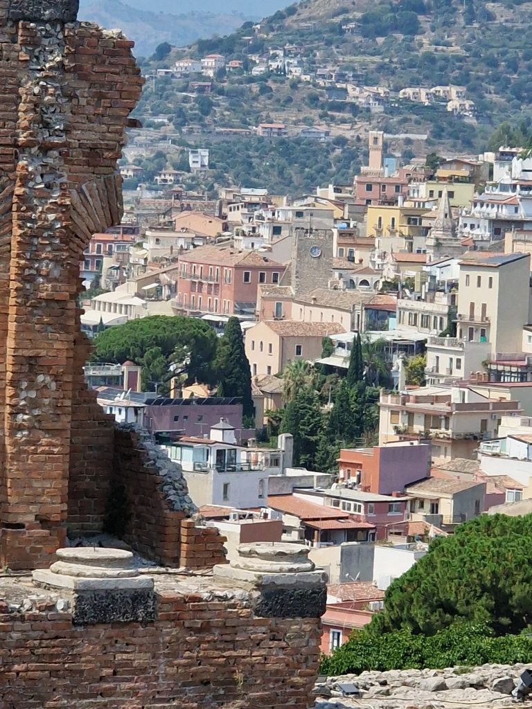 Sur la côte est de la Sicile, surgit en haut d’une colline, une ville magique. Taormina ou en grec Ταυρομένιον Tauroménion.