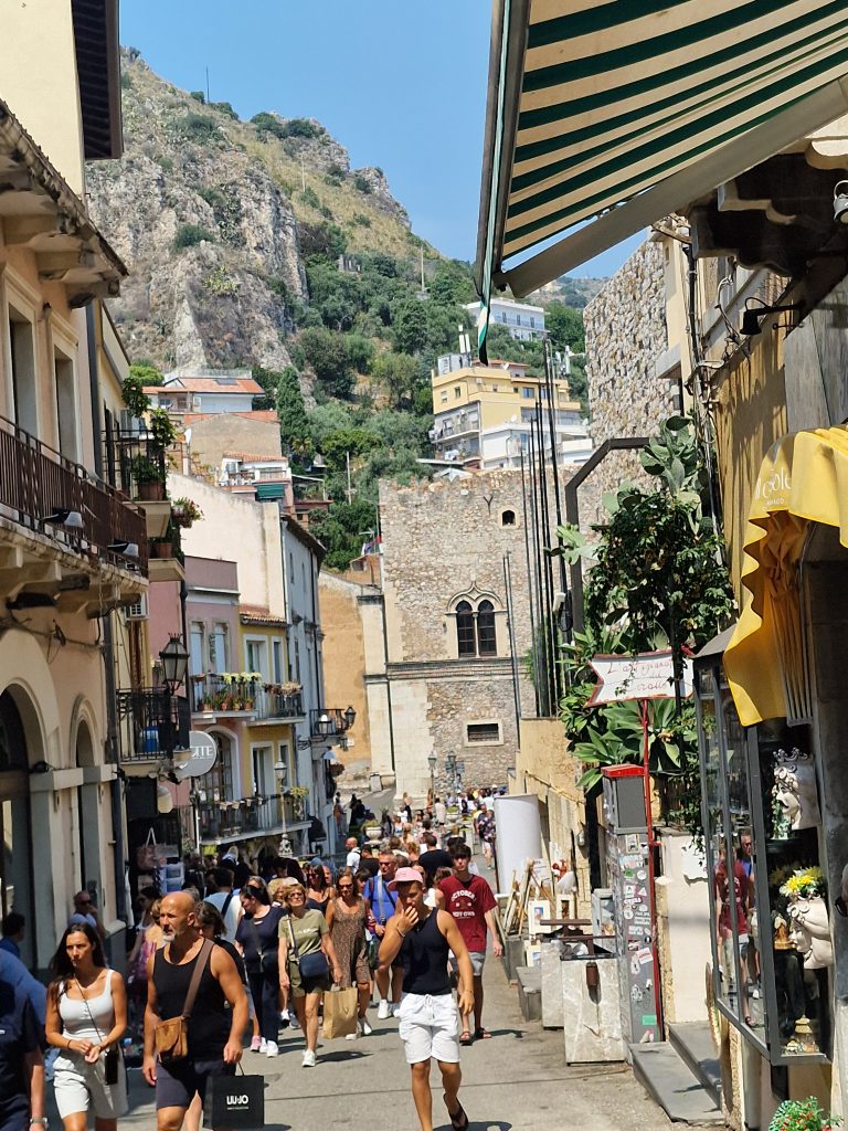 Et il faut le faire à pied. Le centre piéton s’étend sur environ un kilomètre, entre la porte Catania et la porte Messina. A l’entrée tout vous attend, cafés, restaurants, terrasses et boutiques.