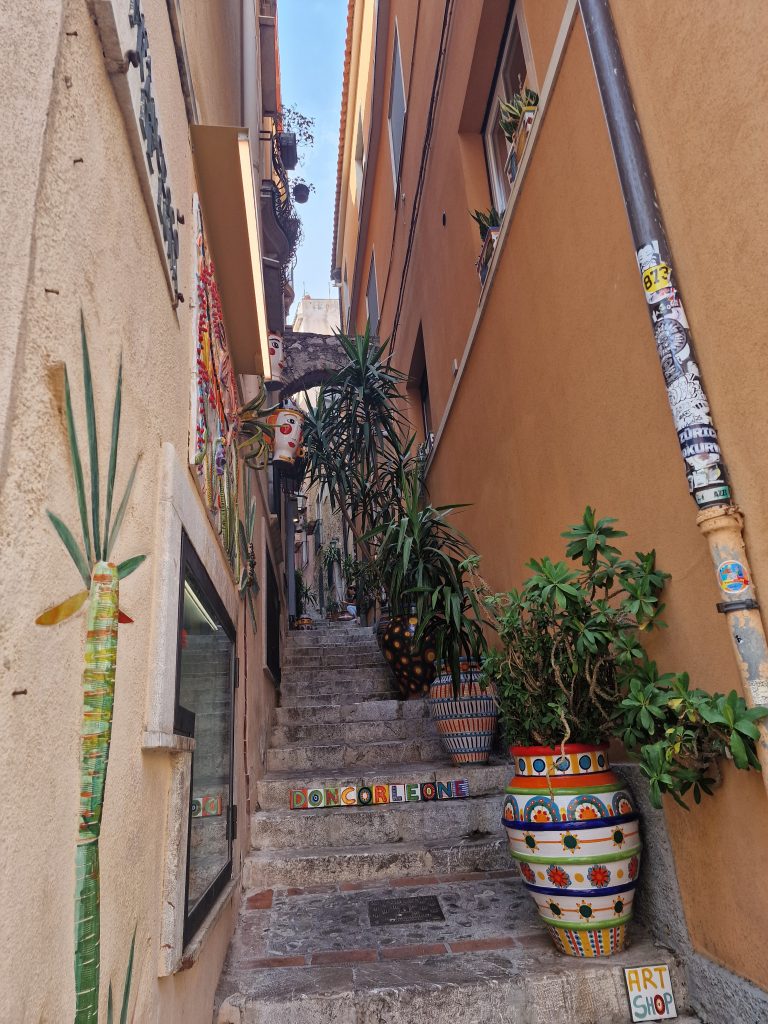 Taormina a été pour moi un véritable coup de cœur et cette ville perchée à plus de 200 mètres au-dessus de la mer Ionienne a vole mon coeur. Je me rappellerai toujours la chaleur écrasante de cette journée d’aout et l’humidité mais tout était supportable, tant la ville m’a subjuguée.