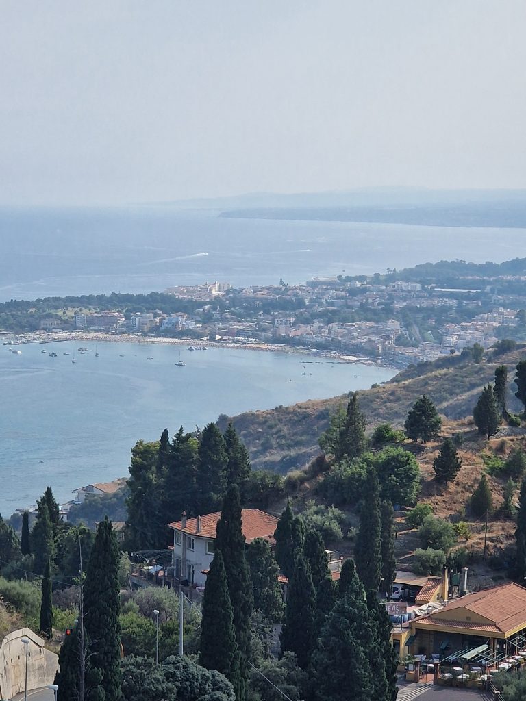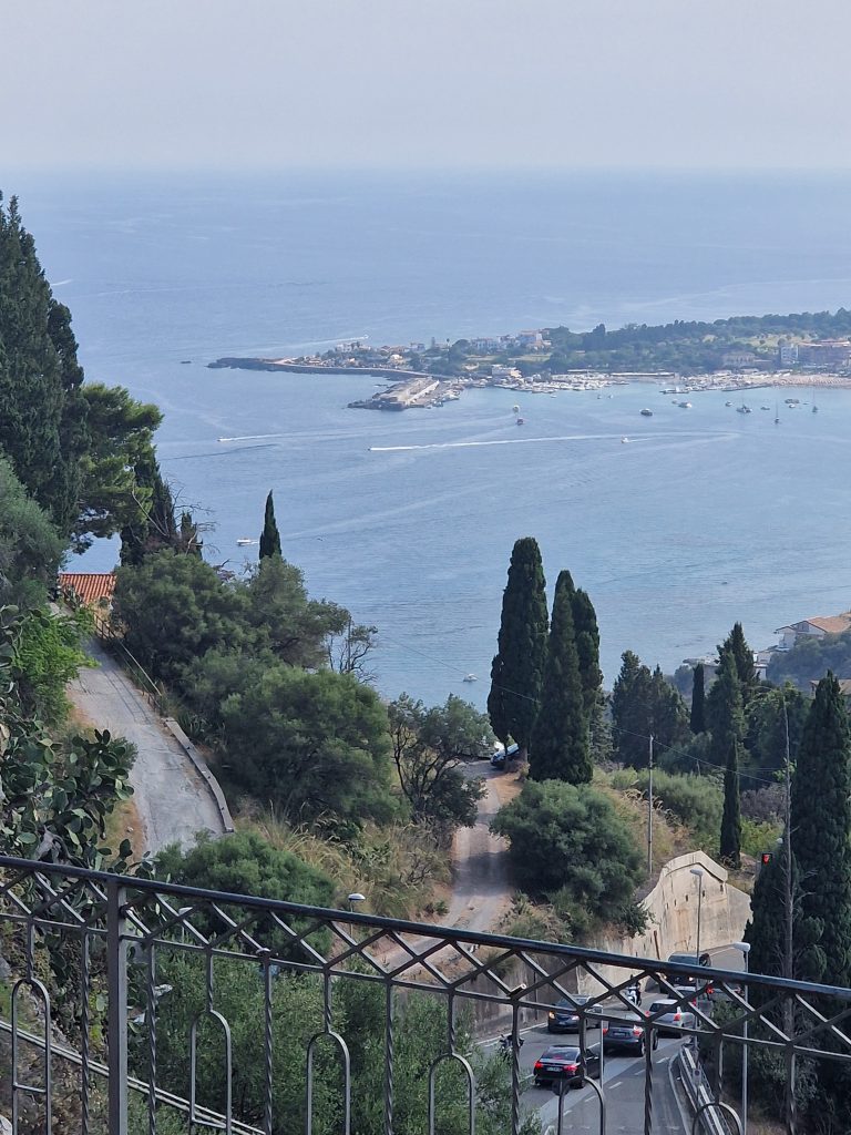 Mais revenons au début de notre aventure avant le théâtre. Nous avons pris une petite navette depuis notre hôtel à Giardini Naxos pour nous y rendre. Giardini Naxos est la voisine de Taormina et c’est super pratique justement. Petit bémol, prévenir les froussards, nous avons eu quelques émois et c’est peu dire, ( comme quand on s’était rendus sur la cote Amalfitaine ( avec le bus qui roulait avec une vitesse folle sur des routes étroites et escarpées lool) et bien en Sicile, les conducteurs c’est kif kif ( lool, il faut avoir l’estomac bien accroché)