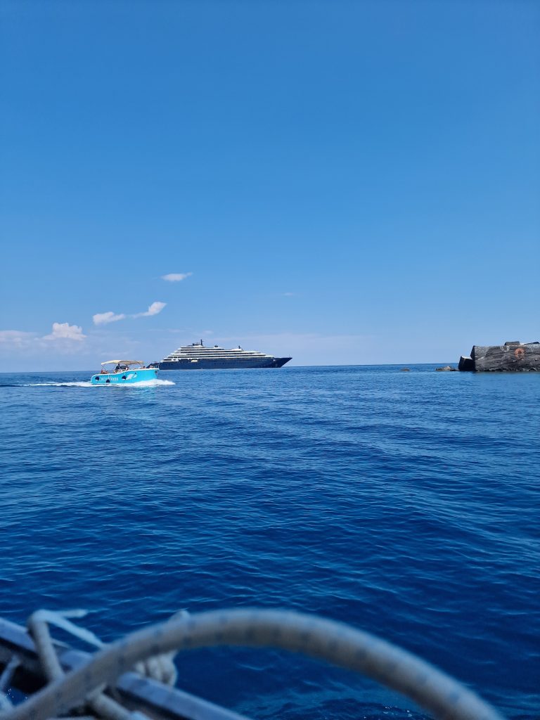 Nos moniteurs dans le bateau nous ont déconseillés de grimper sur les rochers, car des oursins et coquillages peuvent trancher les pieds qui ne sont pas protégés. Pensez à prendre des sandales aquatiques.