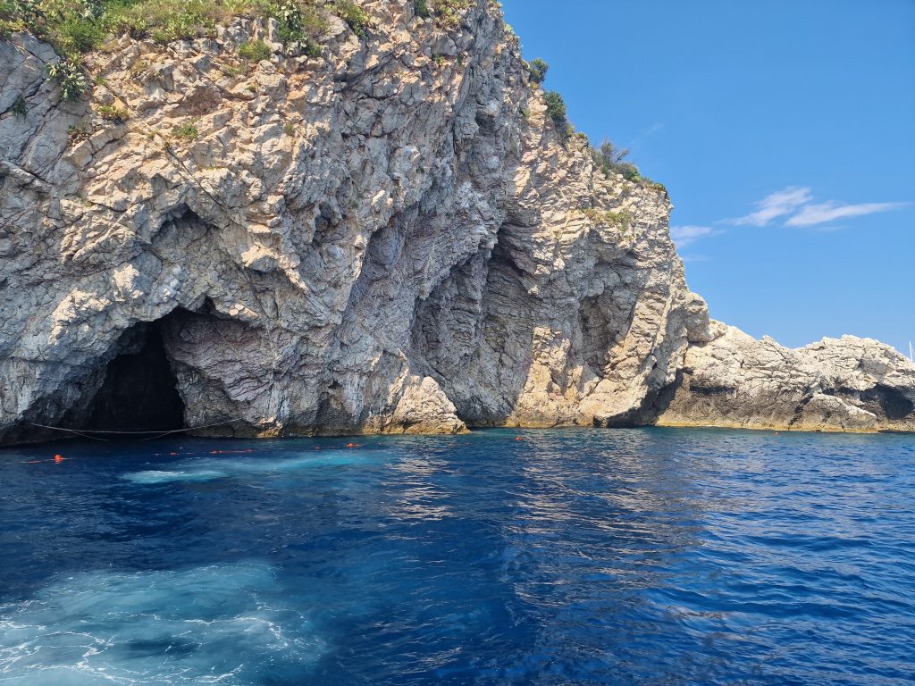 Depuis notre hôtel à Giardini Naxos nous avons opté pour une excursion tout pris en charge, navette, puis petit bateau qui nous amène vers la grotte bleue à Isola Bella, ou les plus teméraires ont fait du snorkeling pour découvrir en surface les fonds marins ( ma premiére je dois dire, mais j’avais un peu la frousse)