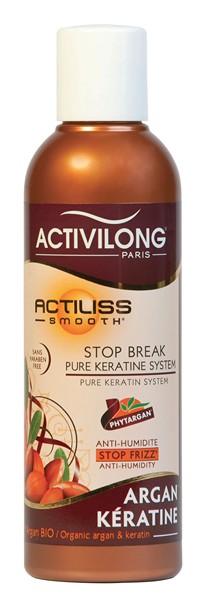Pour booster vos cheveux et stopper leur casse avant l’arrivée de l’automne, ACTIVILONG a créé STOP BREAK-PURE KERATINE SYSTEM ACTILISS. Ce complexe, enrichi en huile d’argan bio et en kératine pure, constitue une protection renforcée avec effet de soin immédiat et durable.
