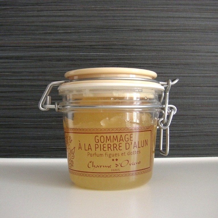 Enrichi au miel et à la gelée royale, délicatement parfumée à la fleur d’oranger. La pierre d’Alun est traditionnellement utilisée comme anti-transpirant naturel grâce à ses propriétés astringentes. Charme d’orient a imaginé un gommage à la fois doux et raffermissant. Pour la première fois, la pierre d’alun est réduite en sels: les fines particules d’alun enrobées d’un délicieux mélange de miel et de gelée royale exfolient la peau en douceur.