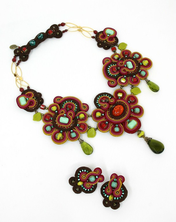 Comme les « Dream Catcher » et « Excalibur » qui sont de véritables entrelacs de passementerie et de pièces métalliques ouvragées, procurant un effet de style mystérieux et une élégance indéniable. Déesse de l’amour et de la beauté, avec le collier« Aphrodite » qui se présente avec de splendides pierres artificielles, qu’elle a choisi au gré de son humeur. A l’origine de l’inspiration de cette collection, le voyage de la créatrice en Russie. Avec un cabochon « marguerite » de verre turquoise cerné d’un vert profond symbolisant les fleurs poussant sur la mousse des arbres de la forêt. Dans la série pour laquelle nous avons eu notre coup de cœur, Seigneurs d’Orient, offre l’image de Sultans se prélassant dans des décors fastueux sur des tapis chatoyants, entre sable et ciel azur. La collection « Sultane » est un subtil mélange de tons chauds et riches qui transportent dans le rêve de lointaines contrées. Et enfin, last but not least, la collection Tsarine, qui rappelle la splendeur impériale de la Russie de la grande Catherine.