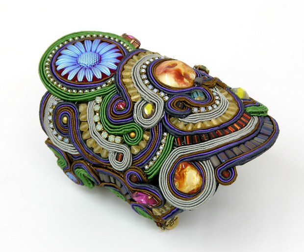 Les bijoux Dori Csengeri sont entièrement cousus à la main selon une technique ancestrale d’assemblage à l’aiguille de rubans de cotons soyeux. Agrémentés de cabochon de cristal, de perles de rocailles ou de bohème, de pierres fines, ils s’ornent aussi de bois, de nacre, de cuivre.