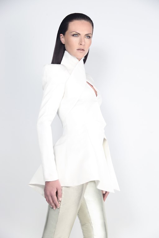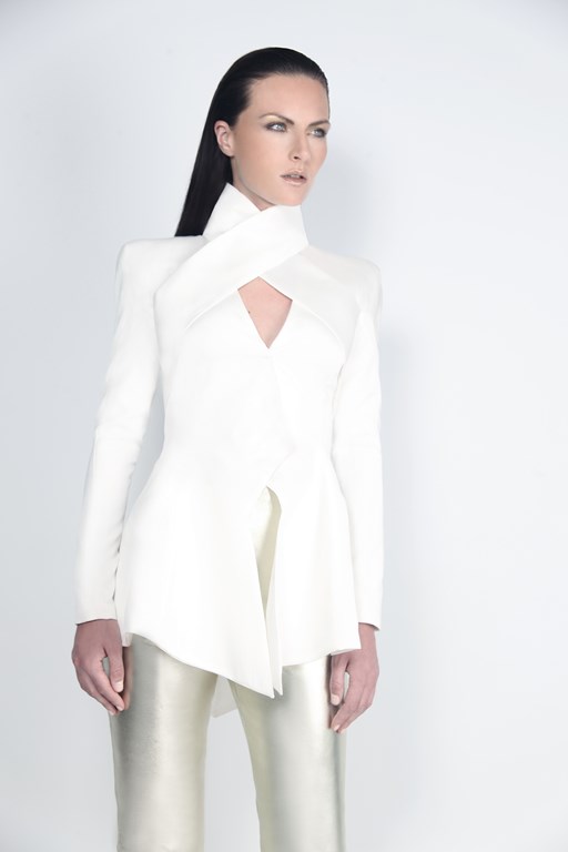 L’allure est gracile, les tissus s’allient entre eux, les cuirs et fourrures robustes se mélangent à l’organza, le mikado ou encore le crepe de soie ; le blanc froid s’allie à l’or chaud et aux pastels doux, certains volumes sont d’une part importants pour montrer la puissance, la grandeur de la divinité. D’autre part la collection possède des pièces près du corps et des ouvertures pour mettre en valeur les courbes et la féminité. ”