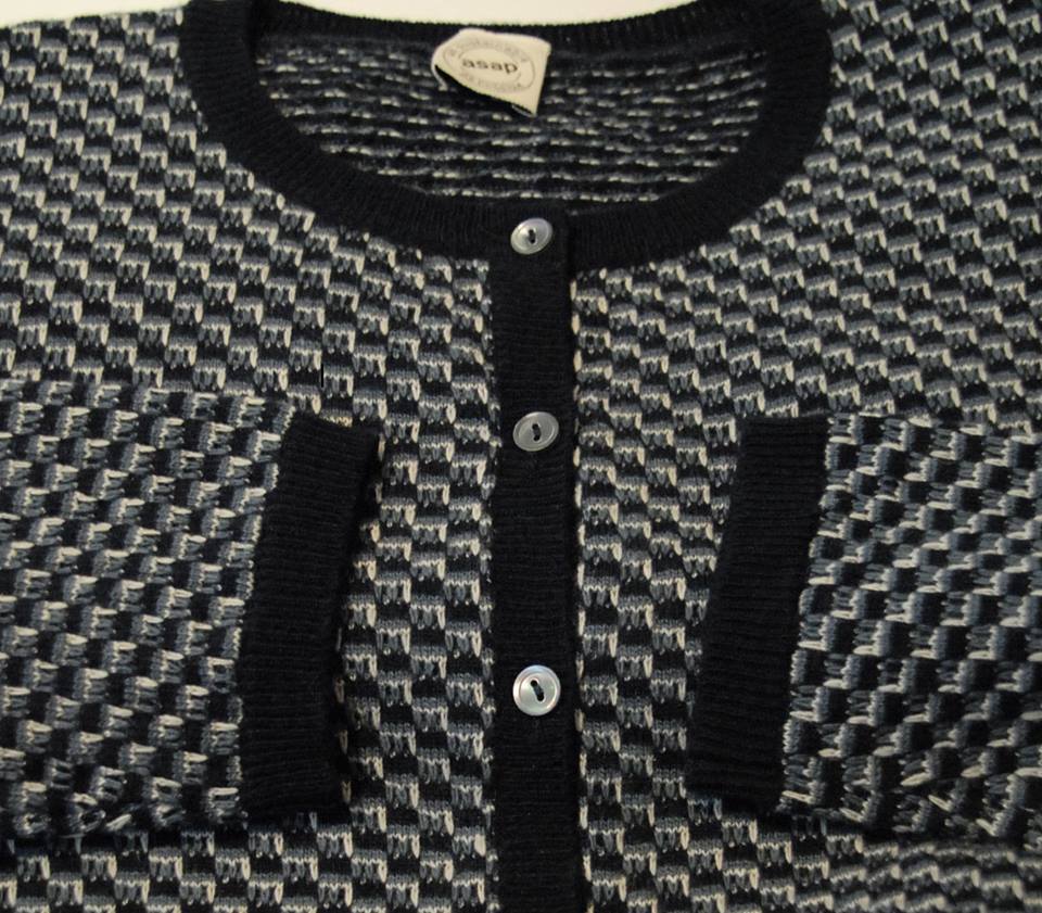 • recycled knit, recycled jersey, recycled fabric Récupération et mise en valeur de matériaux haut de gamme qui ont été laissés de côté par de prestigieuses maisons italiennes de prêt-à-porter parce qu’il n’en restait qu’une quantité trop faible ou liés aux précédentes collections. asap sélectionne les fils et tissus et définit un projet en optimisant les matières à disposition. Ces articles ne peuvent être fabriqués qu’en quantité limitée, ce qui les rend d’autant plus exclusifs.