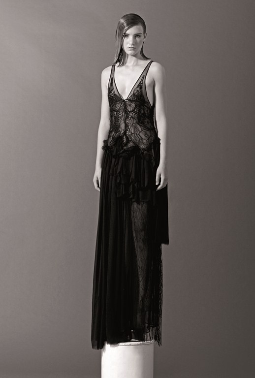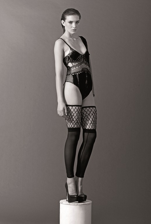 Gothique à souhait, femme fatale avec sa dentelle fine à fleur de peau, cette collection propose des tenues minimalistes avec comme dénominateur commun le noir.