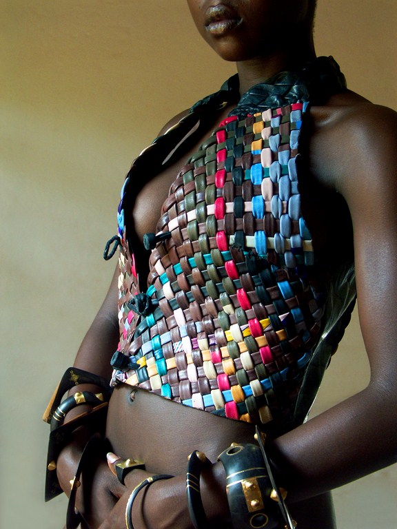 Parlez nous de votre travail? c’est très coloré, c’est très différent et tout est fait à la main. C’est la valeur ajoutée de mon travail, j’associe les techniques traditionnelles aux techniques plus modernes. Préserver le savoir faire est crucial. Le cuir et le coton bio sont les matières de prédilection. La Collection qui a défilé se nomme Daoulaba II, car c’est une nouvelle étape dans ma collection. J’associe le cuir et le coton, le coton symbolise le Sud du Mali et le cuir c’est le Nord. C’est cette rencontre qui m’intéresse, surtout aujourd’hui dans cette situation que traverse mon pays. C’est la rencontre entre deux matières compatibles et qui font que notre pays reste un. Pour moi, c’est un symbole très fort. C’est un message de paix et de réconciliation avec nous-mêmes et de prise de conscience de notre propre réalité. Il faut mettre l’humain au centre de nos préoccupations!