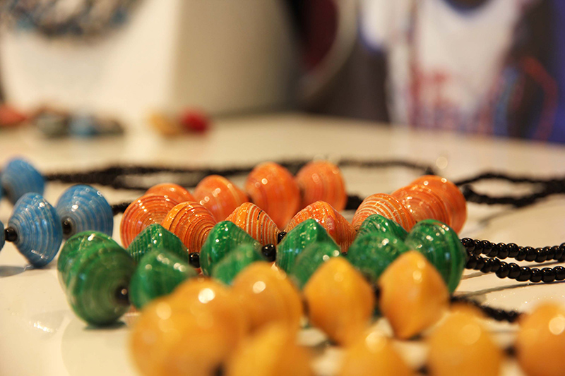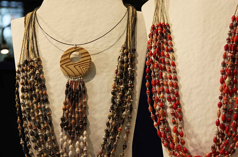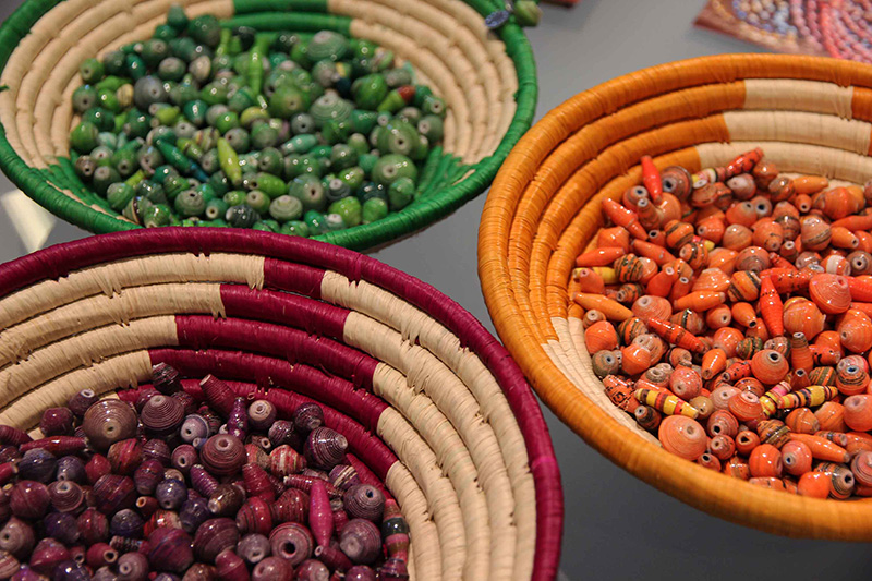 There is a lot of humane stories and meanings behind each paper beads you may find when wearing one of the bracelets or necklaces. Seven hundred women are currently working, rolling beads. Today 1000 have gone to the program. It” s an eighteen month program where the women learn to make the beads so just so they can raise money and then they go to the Capital to sell them.