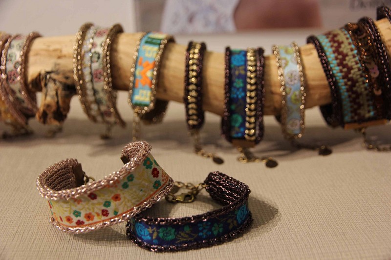 Des bijoux avec une connotation tribale et ethnique qui incluent des galons tricotés, intitulés « Songho » faisant référence au Kenya et à l’Afrique du Sud. « C’est le fil tricoté qui est mon ADN » explique la créatrice. Tout part du fil et ensuite on assemble des matières au fur et à mesure.